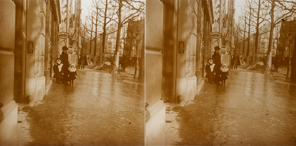 Vers 1900, la stéréoscopie n'est plus seulement un art réservé à des professionnels: des appareils à deux objectifs sont désormais proposés aux amateurs. Ceux-ci vont photographier leur univers et nous y plonger: lieu d'habitation, de travail et de loisirs.